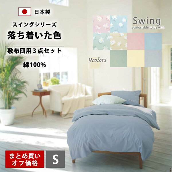 縮み タテ-3%,ヨコ-3%(JIS-L-1096D法) 柄 無地、フラワー 色 ピンク、ブルー、グリーン、ベージュ、グレー(グレーは無地のみ) 縫製基準 掛け布団カバー 生地端はロックミシン仕上げ、縦の一辺にYKK全開ファスナー付き(2本針縫製) 8か所とめ紐付き(2本の紐タイプまたはスナップタイプ) 無地は、えり元にSwingの文字プリント入り、パイピング切り替えし フラワーは、裏が同系統色の無地(リバーシブル) 敷き布団カバー 生地端はロックミシン仕上げ、縦の一辺にYKK全開ファスナー付き(2本針縫製) フラワーは、裏が同系統色の無地(リバーシブル) 枕カバー(無地) 生地端はロックミシン仕上げ、開封口は三巻仕上げ、Swingの文字プリント 枕カバー(フラワー) 生地端はロックミシン仕上げ、短辺にYKKファスナー付き 製造 日本製(縫製・検品・出荷は当店の自社工場内で実施) 備考 こちらのカバーのセットには、布団は含まれません。